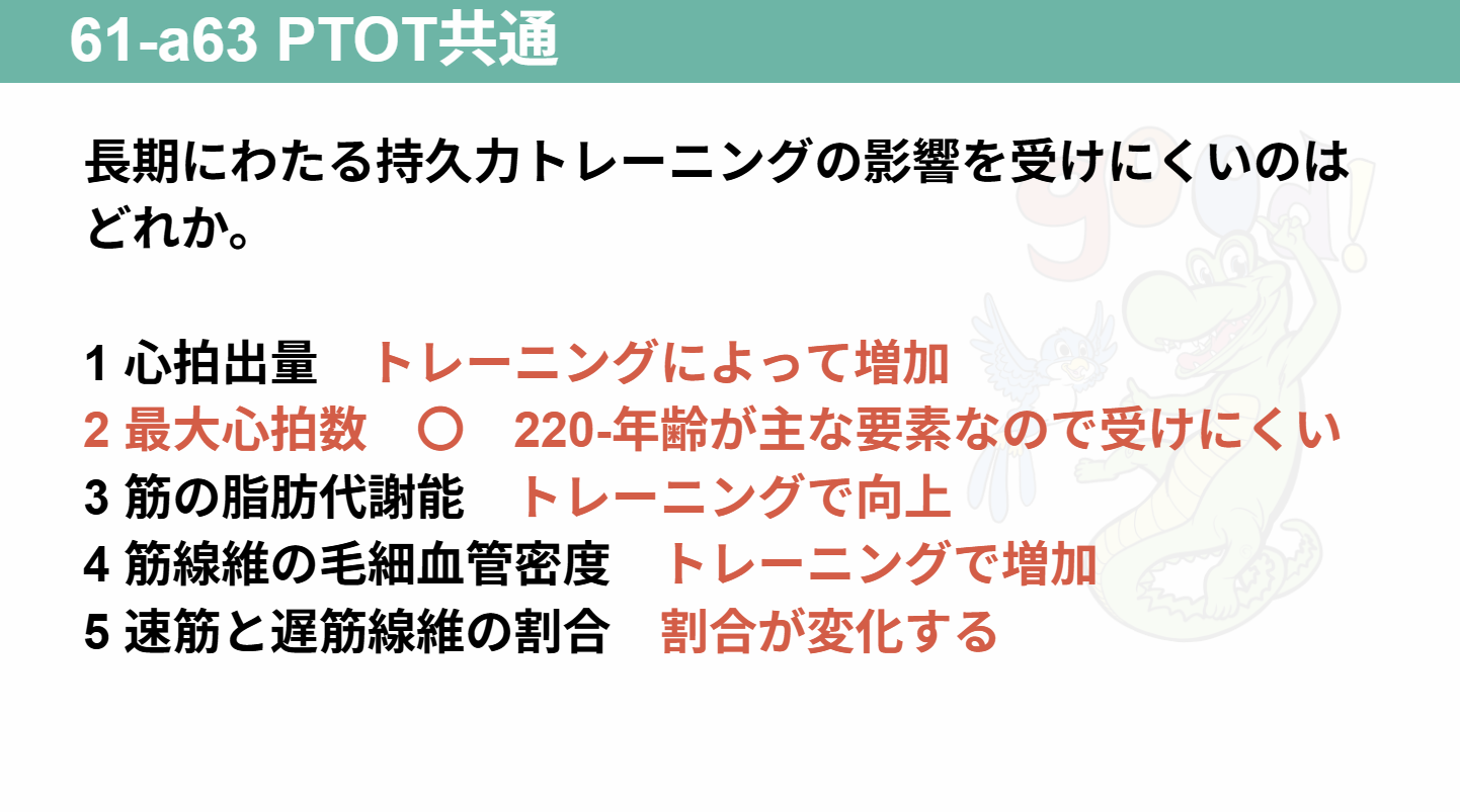 選択肢5は長期の持久力トレーニングであれば遅筋線維の割合が多くなる可能性は少なからずあるため当塾では2を正解とした。